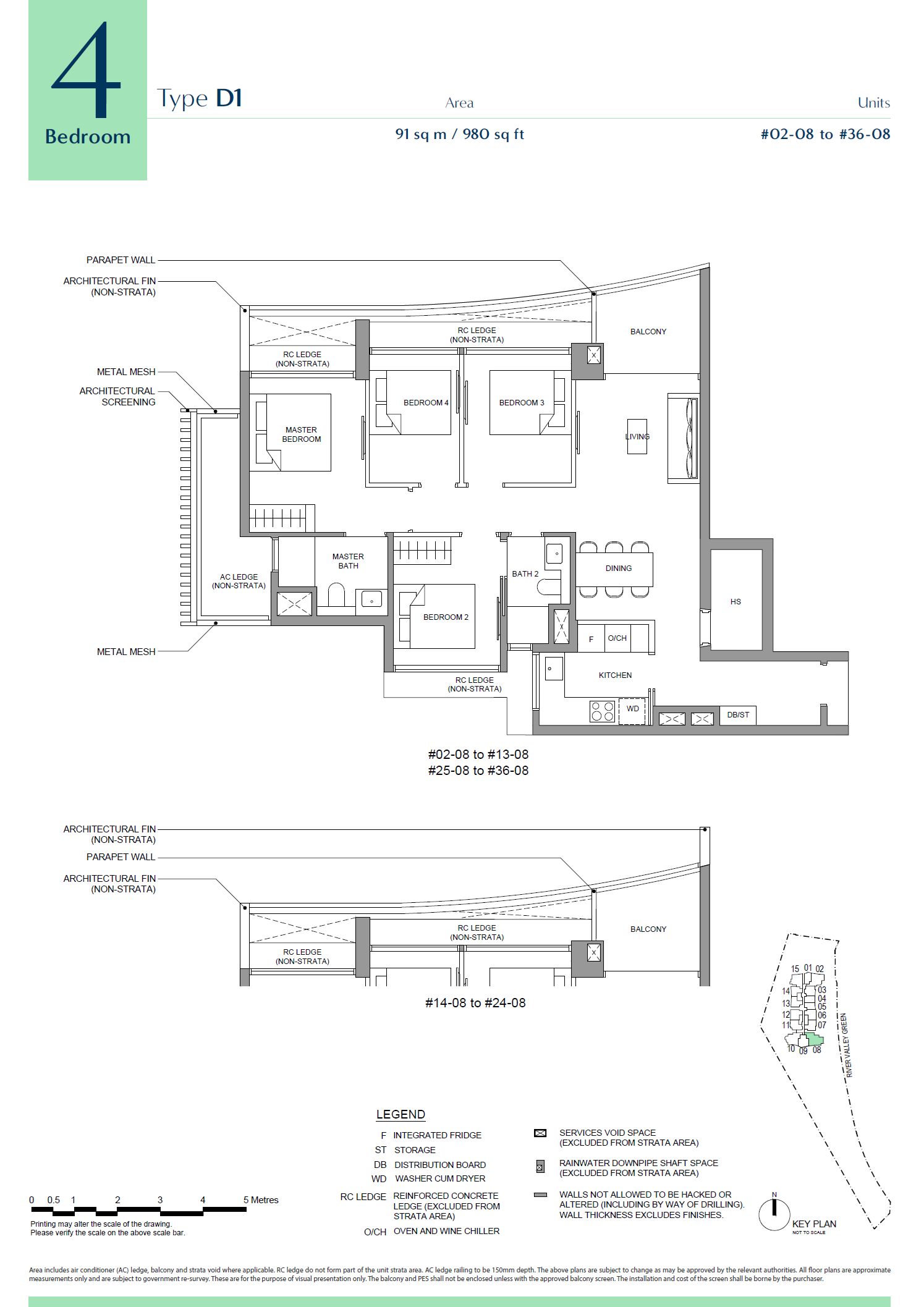 | 4 Bedroom | D1 | 980 | 1 | $3,516,000 |